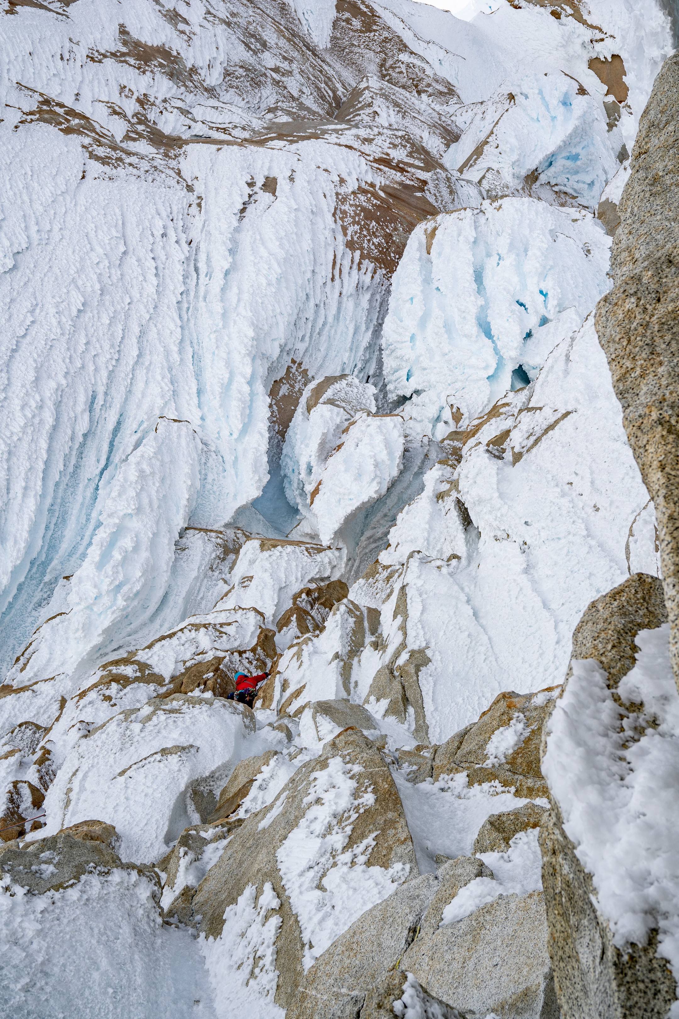 Vor uns öffnet sich ein Spalt zwischen zwei riesigen Eistürmen. Ähnlich einem riesigen Tor, welches uns Eintritt in eine andere Welt gewährt. Wir tauchen ein, in eine Landschaft wie von einem anderen Planeten. Jetzt kann ich gut verstehen, warum der Cerro Torre eines der begehrtesten Ziele der Alpinistenszene ist. Zum Glück sind wir nicht wie geplant am Vortag aufgestiegen, dies hätte ein ziemlich ungemütliches Biwak mit sich gezogen.