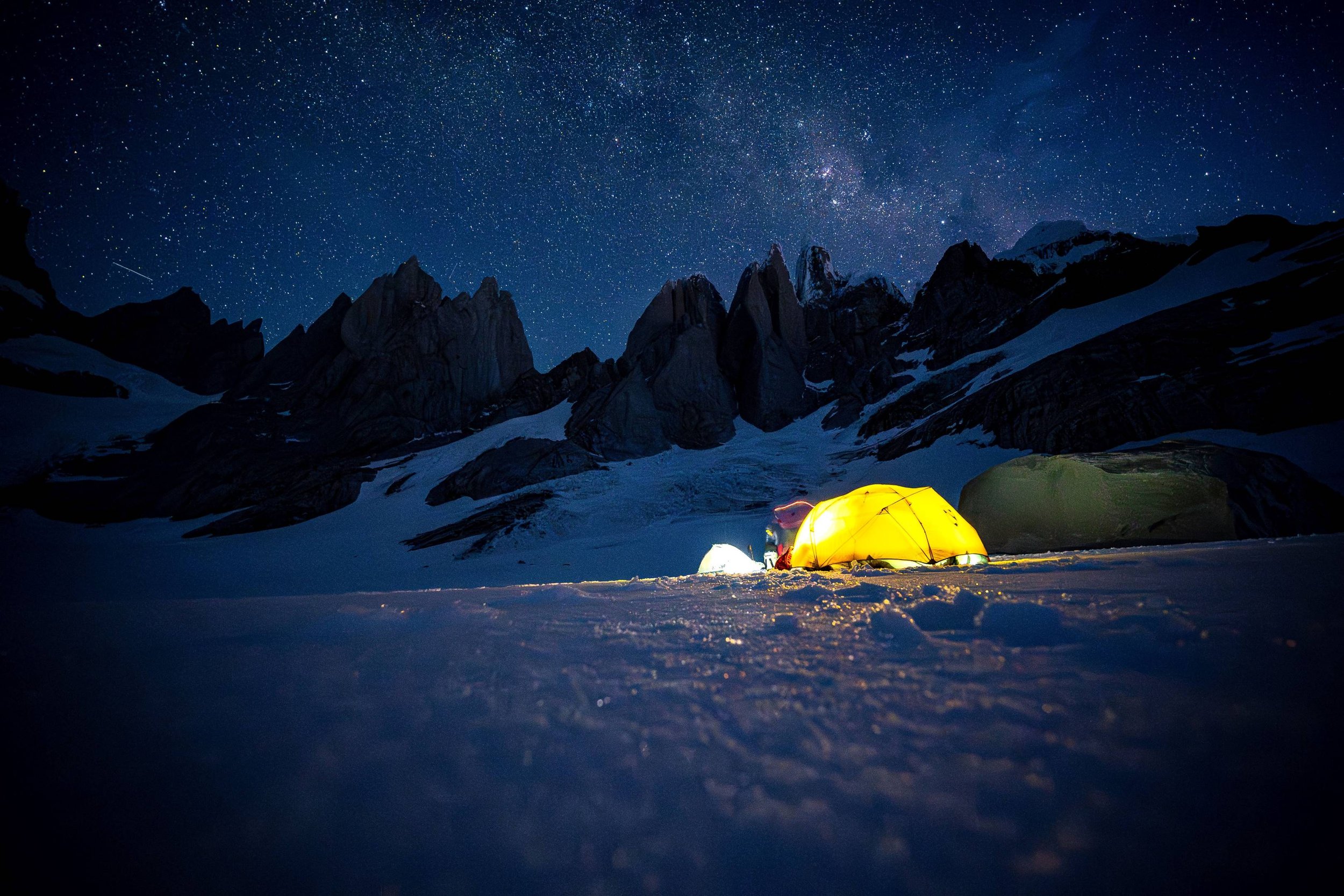 Das ganze Schauspiel hat leider zur Folge, dass sich bald die Sonne verabschiedet, und mit ihrem verschwinden eine eiskalte Nacht hereinbricht. Jeder vergräbt sich in seinem wärmespendenden Schlafsack, die Italiener verschwinden zu dritt in einem Ein-Personen-Zelt. Und ich kuschle mich neben meine… Kamera.