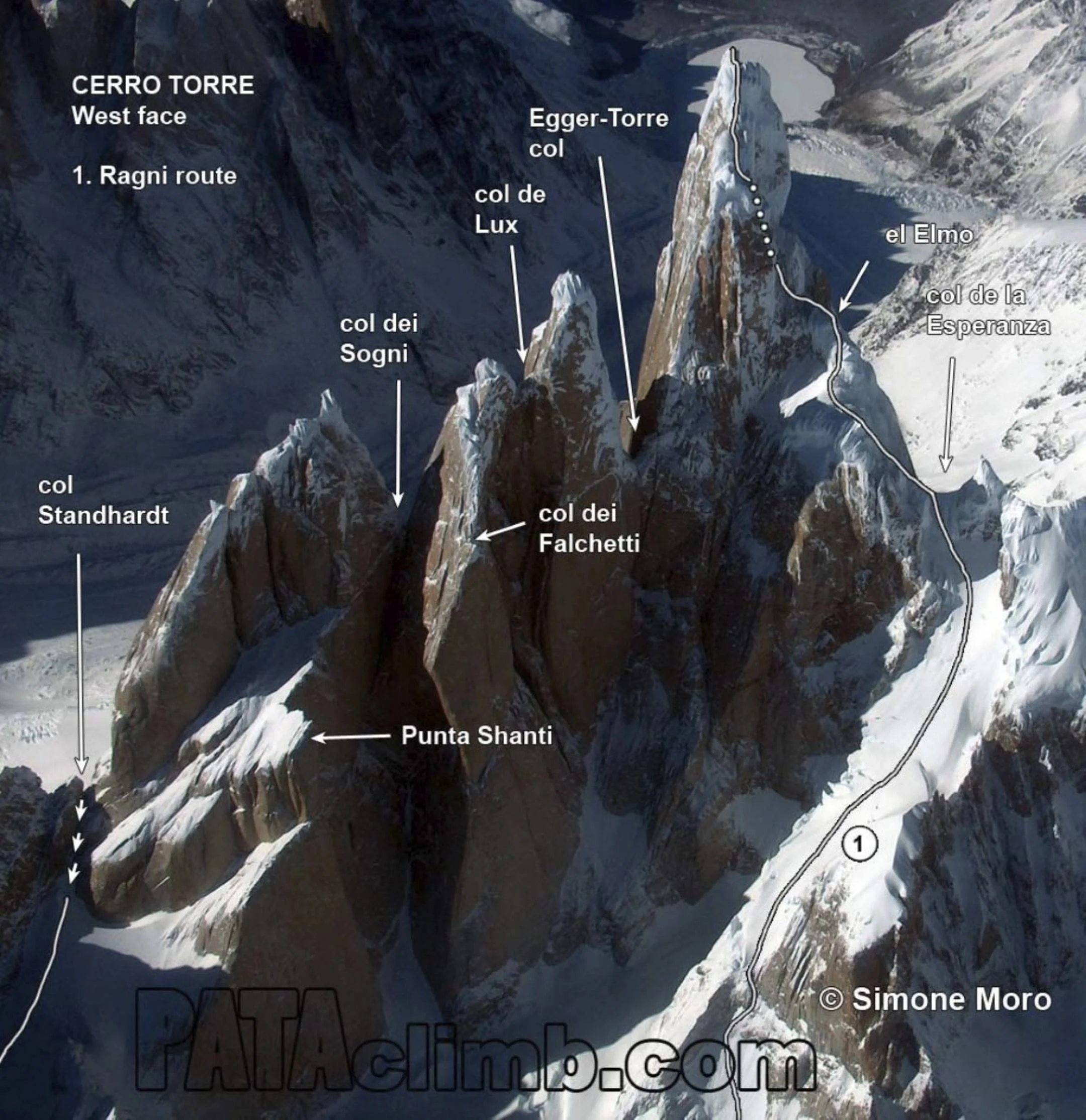 Die “Ragni-Route” auf den Cerro Torre (c) Simone Moro/ www.pataclimb.com
